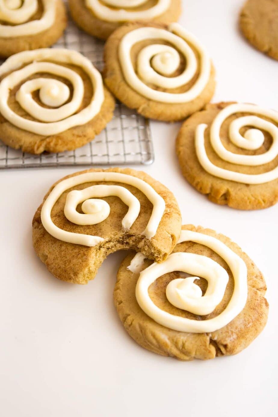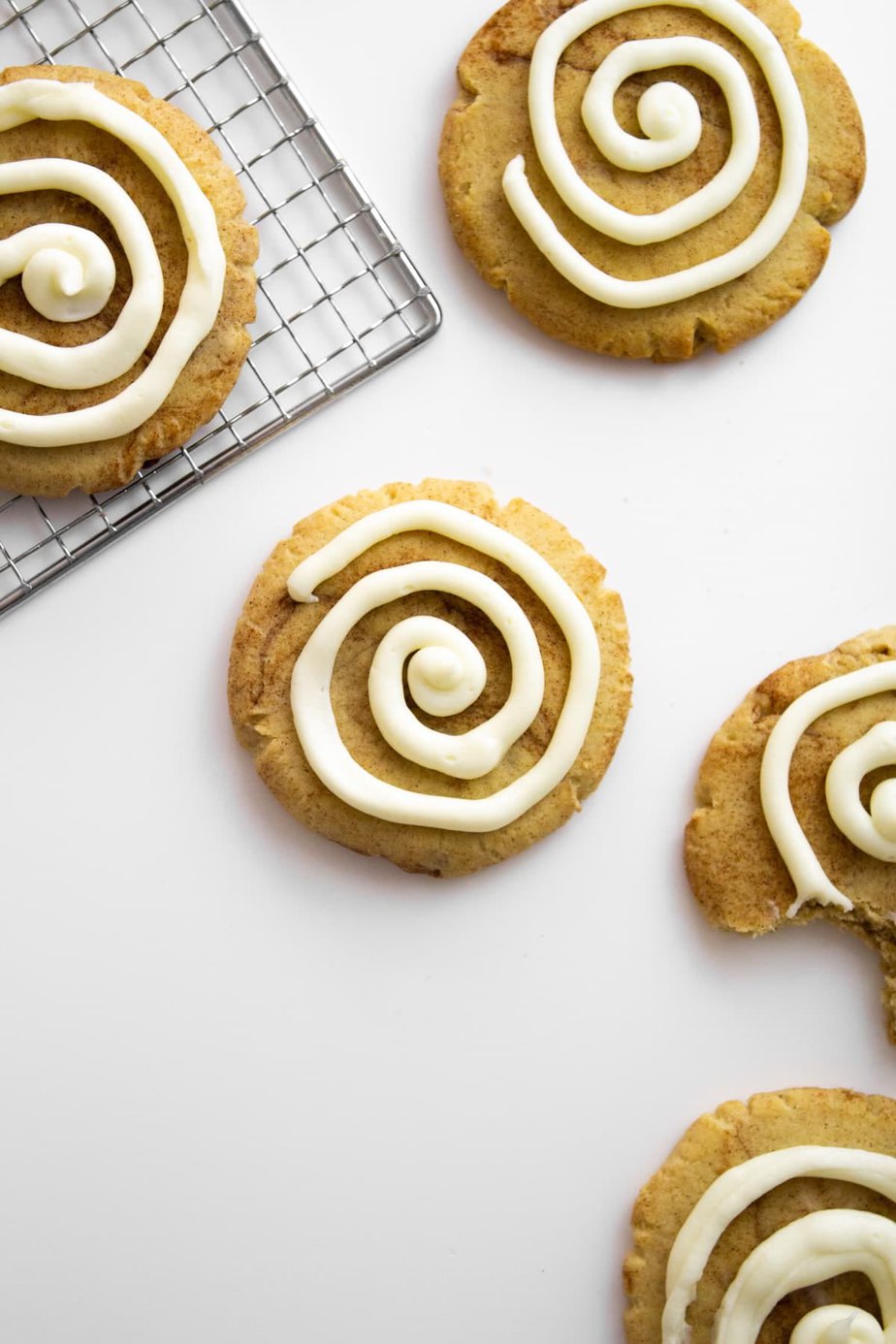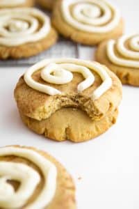 These brown butter cinnamon roll cookies literally taste like a cinnamon roll. The sugar cookies taste like the dough, mixed with the cinnamon swirl and topped with cream cheese frosting. Say less.