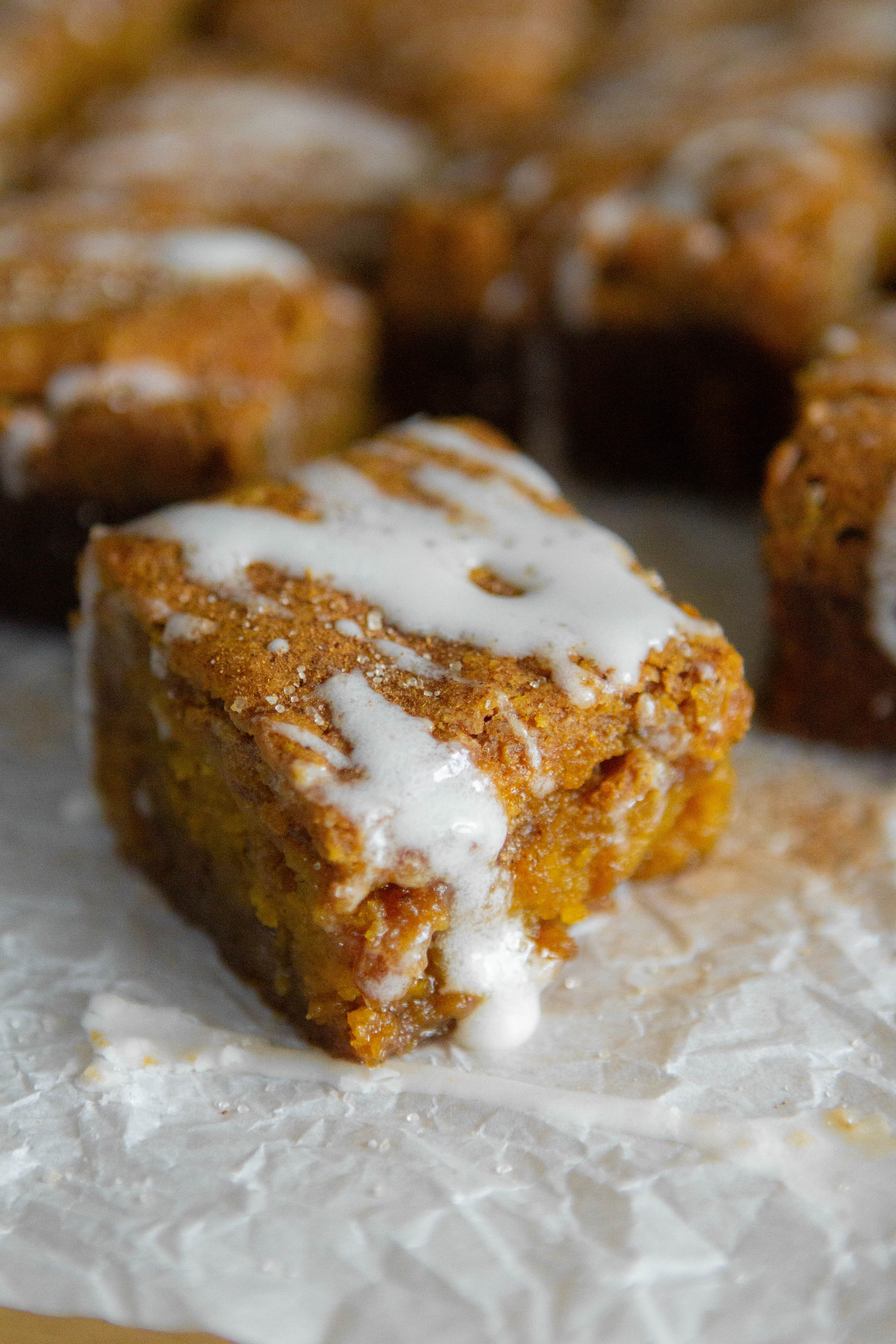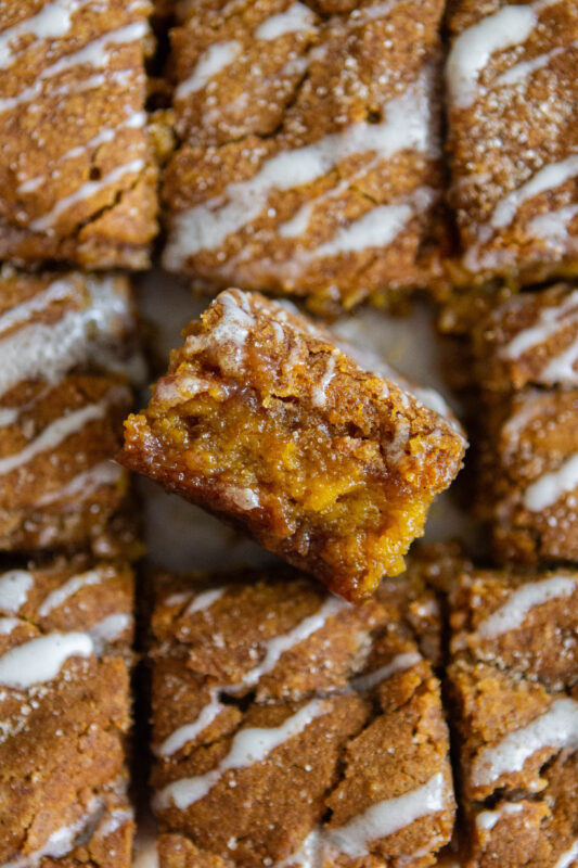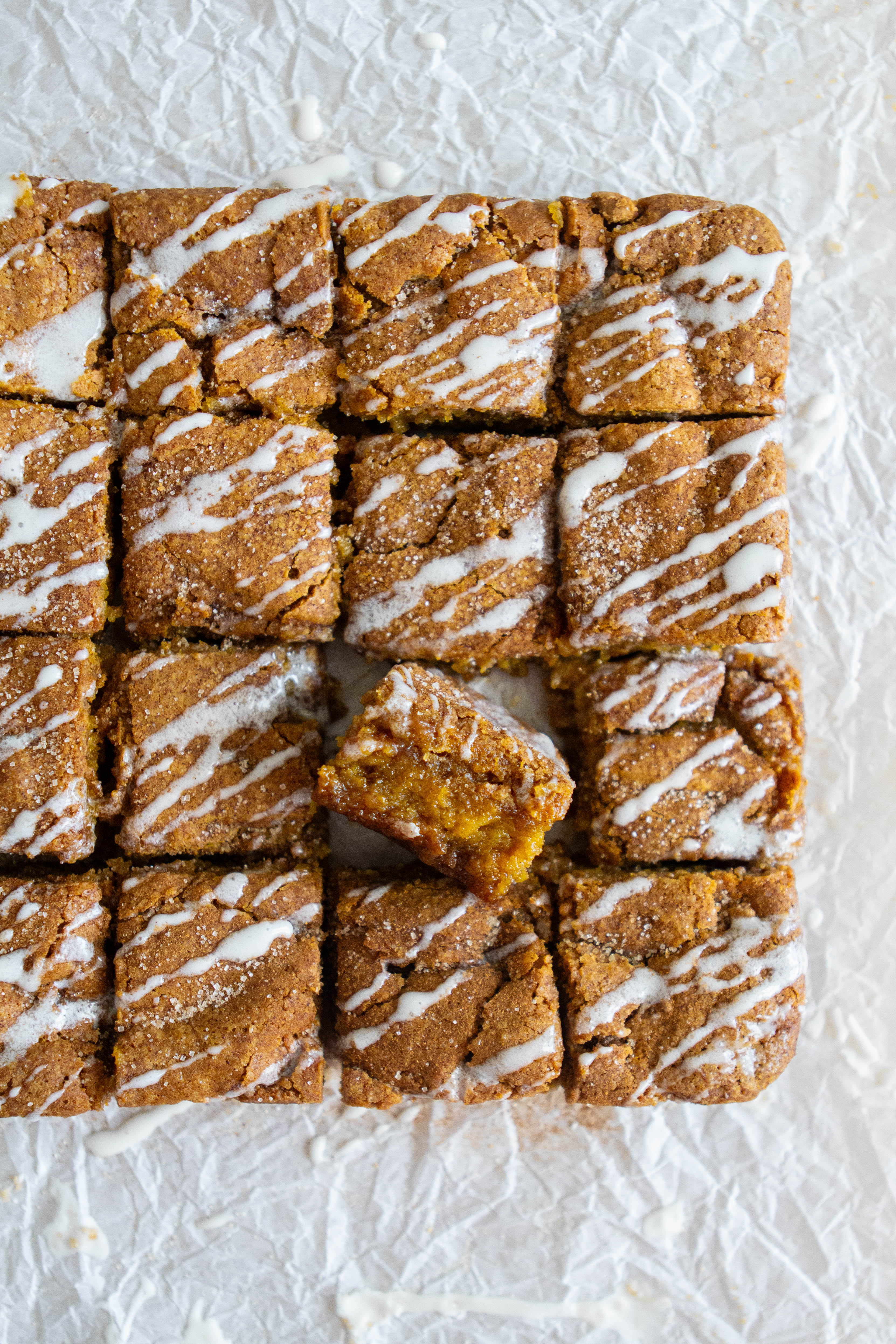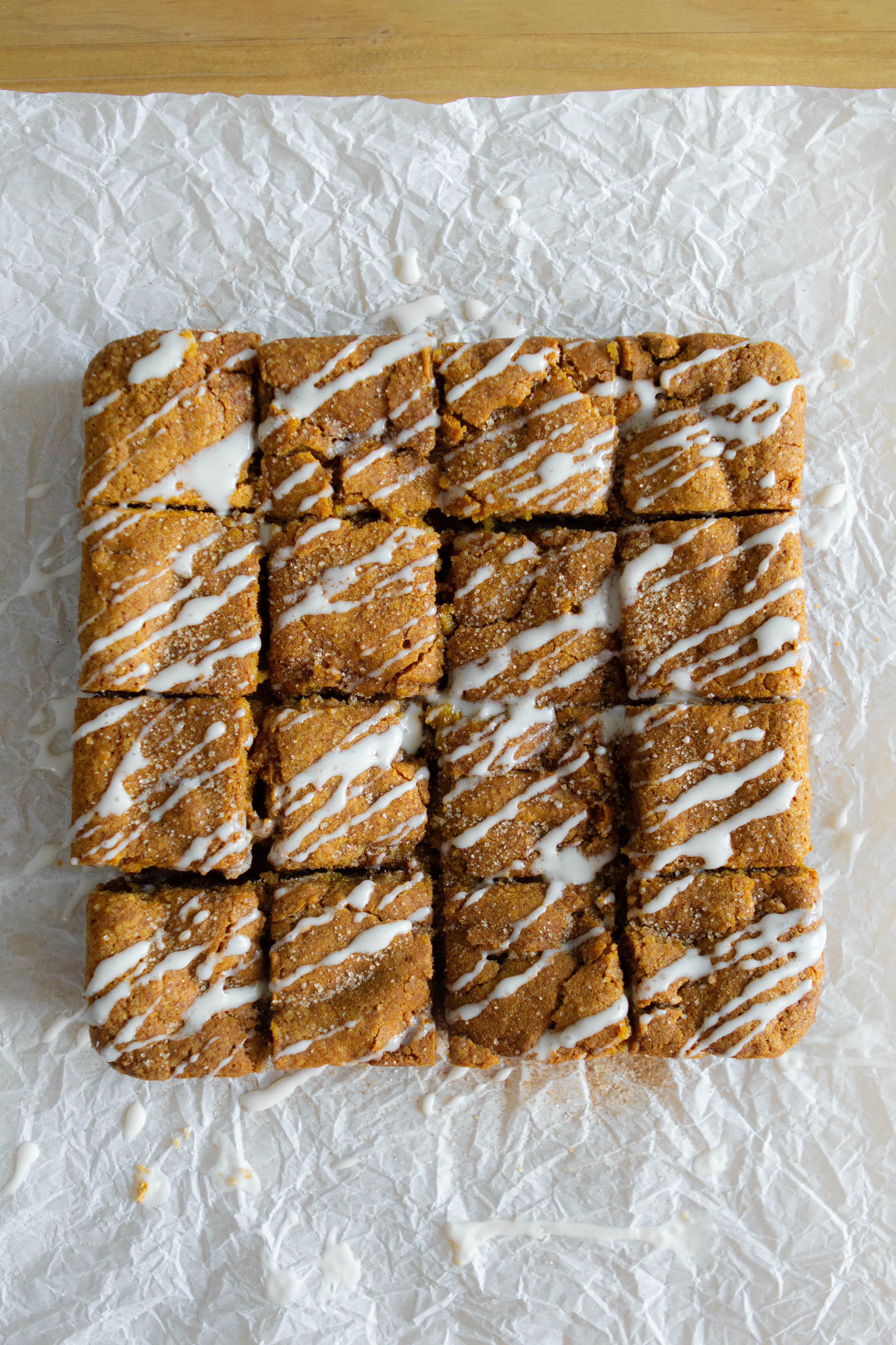 I’ll be honest- pumpkin desserts don’t usually win me over the way apple ones do, but these blondies have (almost) changed my mind. They’re soft, buttery, and that maple glaze on top really makes it, to be honest. Even the apple lovers in my house (and my neighbor’s co-workers) went back for seconds.