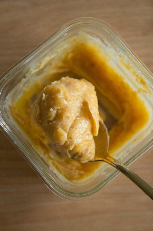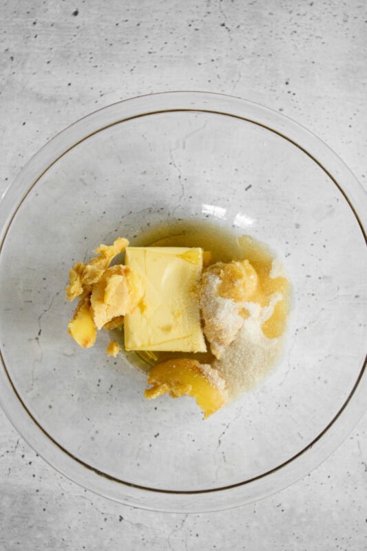 In a small saucepan, brown your butter by melting it, it will break down into separate liquid fat and milk solids. The milk solids are what will become toasted brown, make sure to stir often to move around the milk solids so they don’t burn.