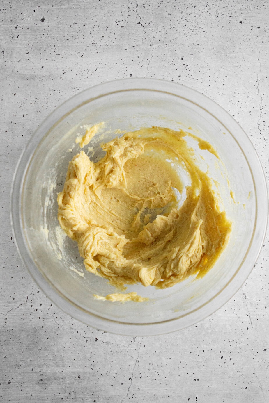 2. Beat browned butter, ½ cup softened butter, maple syrup, sugar, and vanilla extract until light and fluffy. Add in flour and salt, mix until just combined. There will be large pieces of dough.