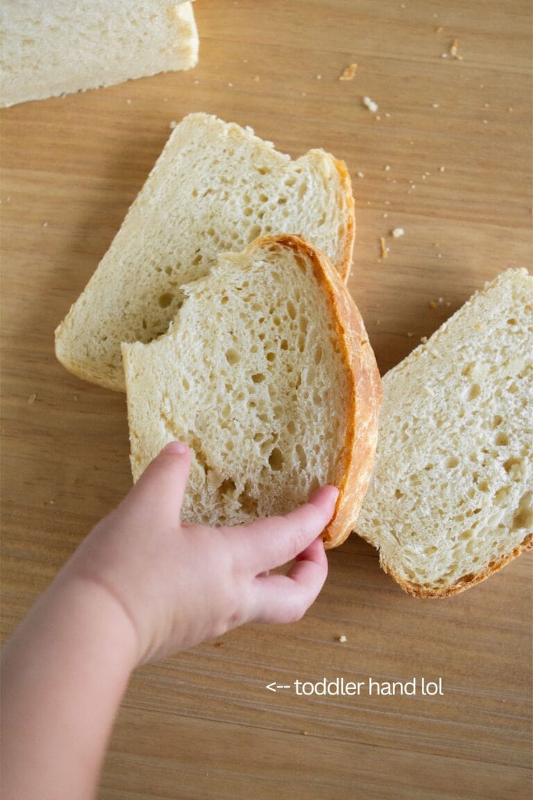 – Do NOT overproof this bread. I know life gets busy and time escapes, after all, why do you think I’d give this very important tip? I’m a mom to a toddler- need I say more? I once over-proofed my bread when it was in its final proof, it raised up super high, fell flat, and baked dense. No fun.