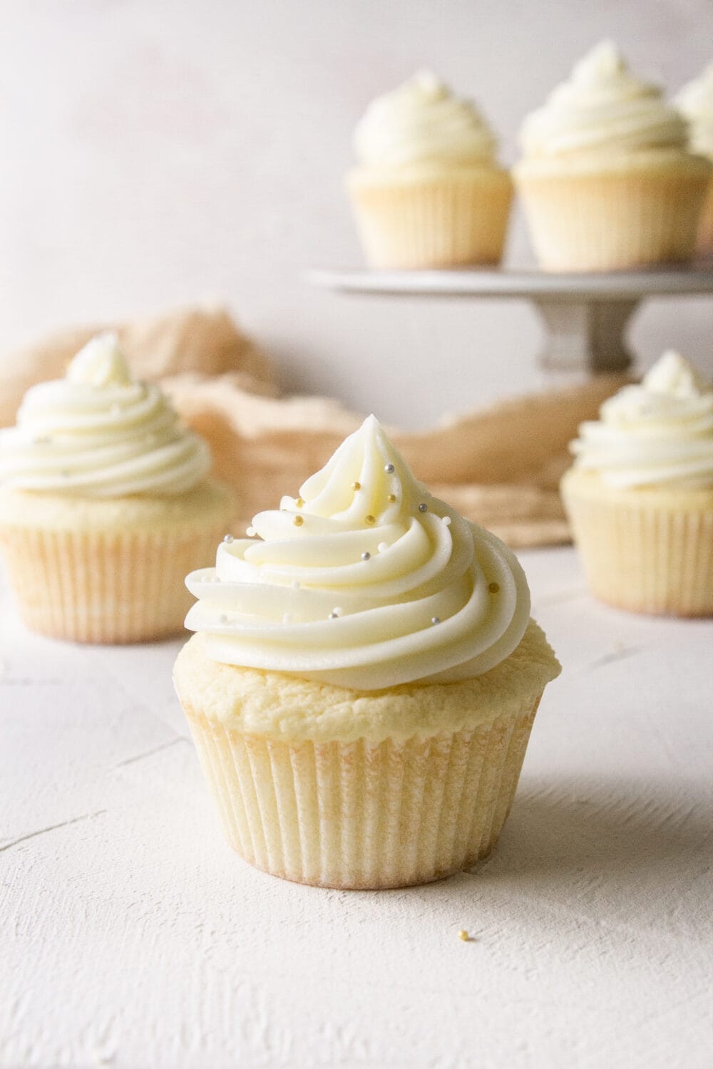 Fluffy, moist, classic vanilla cupcakes. Topped with the most amazing, silky cream cheese frosting.