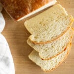 Once cool, slice into about 14 slices and use in less than 3-4 days if stored properly in an airtight bag or a beeswax bread bag like I have listed in my equipment tab. Or freeze for up to 6 months. I personally set aside 6 slices to eat 3-4 days and freeze the rest.