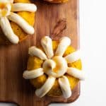 In the large mixing bowl, using a rubber spatula or wooden spoon mix together the browned butter, cake mix, brown sugar, water, pumpkin puree, eggs, pumpkin pie spice, and cinnamon until all combined.
